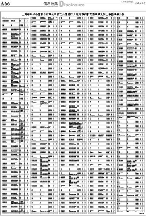 上海韦尔半导体股份有限公司首次公开发行A股网下初步配售结果及网上中签结果公告