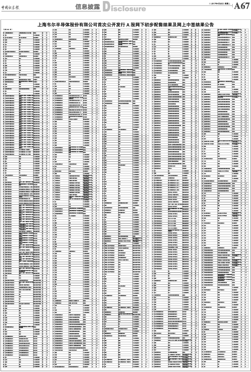 上海韦尔半导体股份有限公司首次公开发行A股网下初步配售结果及网上中签结果公告