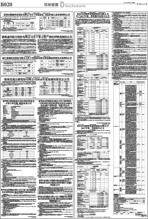 海南高速公路股份有限公司2016年度业绩快报更正公告