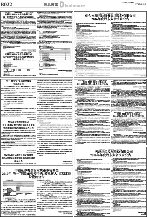 2017年“五一”假期前暂停申购、转换转入、定期定额投资的公告