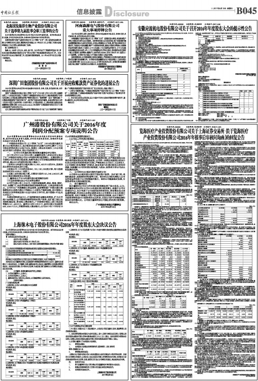 广州港股份有限公司关于2016年度