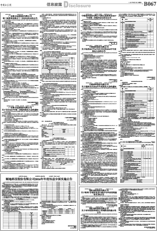 顾地科技股份有限公司2016年年度权益分派实施公告
