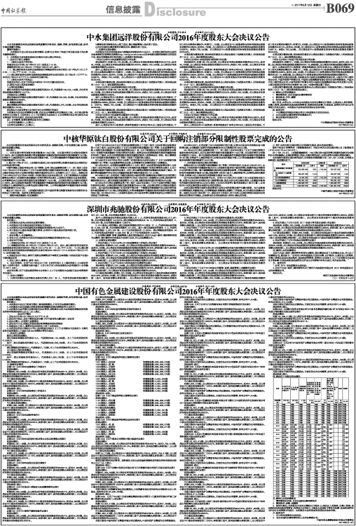 中国有色金属建设股份有限公司2016年年度股东大会决议公告
