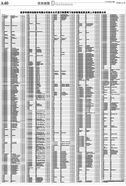 南京华脉科技股份有限公司首次公开发行股票网下初步配售结果及网上中签结果公告