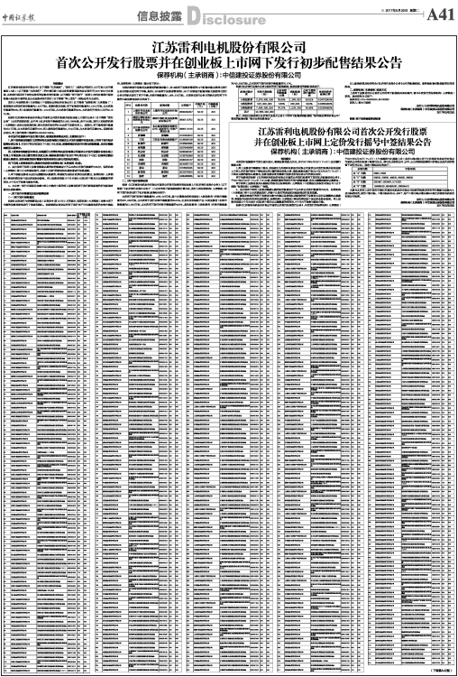 江苏雷利电机股份有限公司首次公开发行股票
