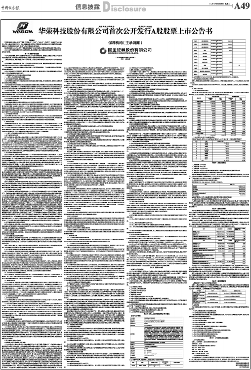 华荣科技股份有限公司首次公开发行A股股票上市公告书