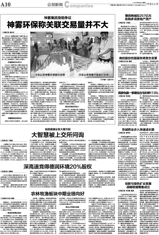 神雾环保称关联交易量并不大