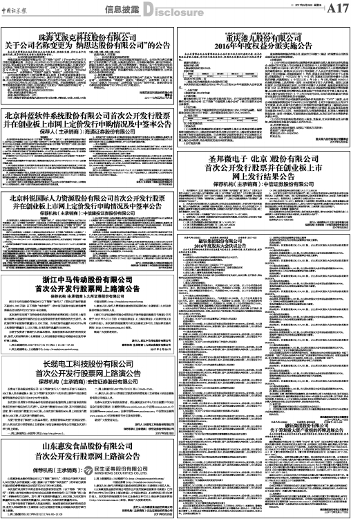第A17版:信息披露