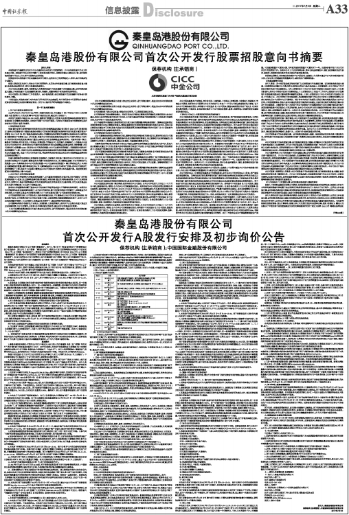 秦皇岛港股份有限公司首次公开发行股票招股意向书摘要