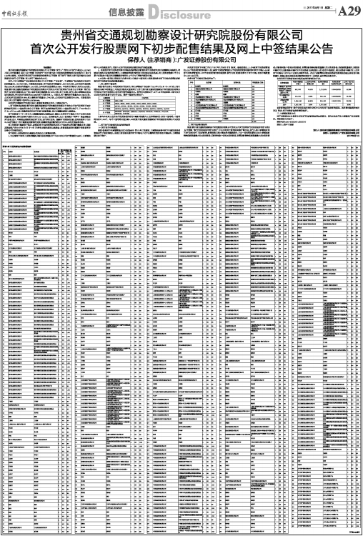 首次公开发行股票网下初步配售结果及网上中签结果公告