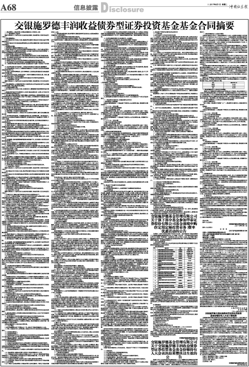 交银施罗德丰润收益债券型证券投资基金基金合同摘要