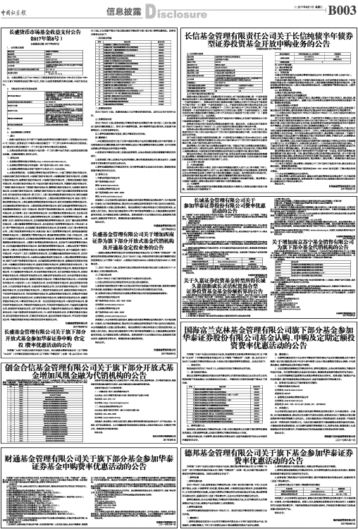 长盛货币市场基金收益支付公告