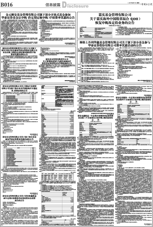 金元顺安基金管理有限公司旗下部分开放式基金参加