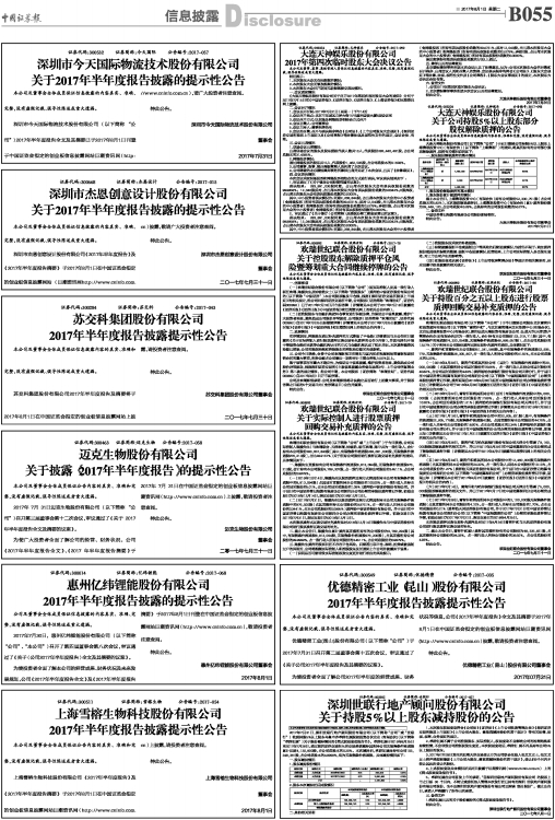 2017年半年度报告披露的提示性公告