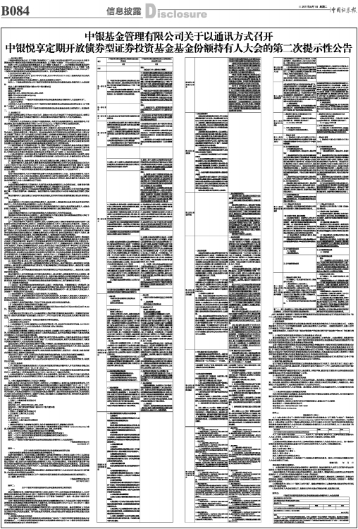 中银悦享定期开放债券型证券投资基金基金份额持有人大会的第二次提示性公告