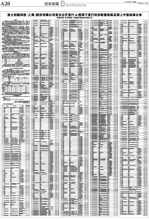 亚士创能科技(上海)股份有限公司首次公开发行A股网下发行初步配售结果及网上中签结果公告