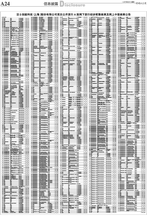 亚士创能科技(上海)股份有限公司首次公开发行A股网下发行初步配售结果及网上中签结果公告
