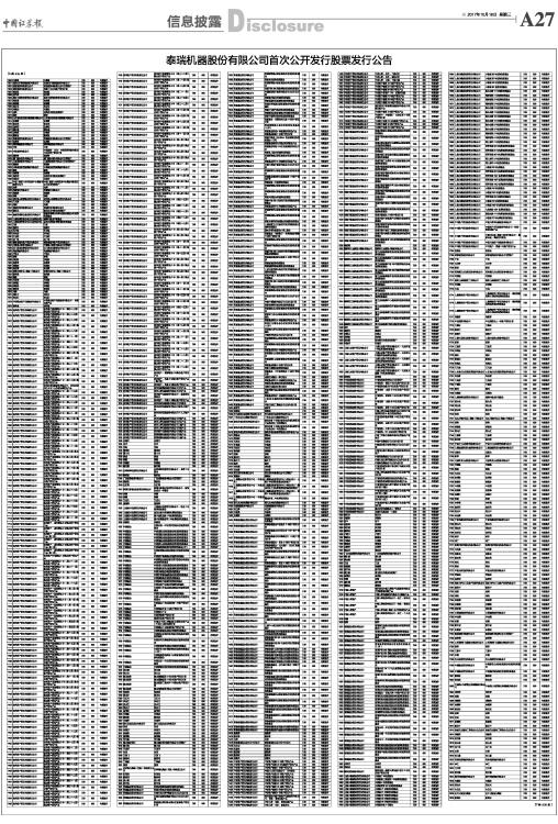 泰瑞机器股份有限公司首次公开发行股票发行公告