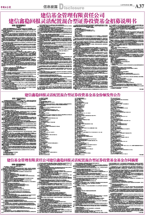 建信基金管理有限责任公司建信鑫稳回报灵活配置混合型证券投资基金基金合同摘要