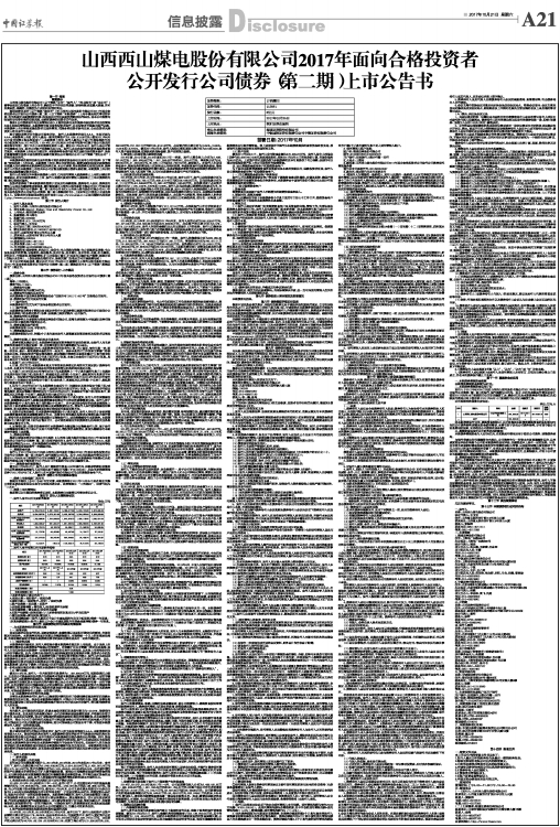 山西西山煤电股份有限公司2017年面向合格投资者