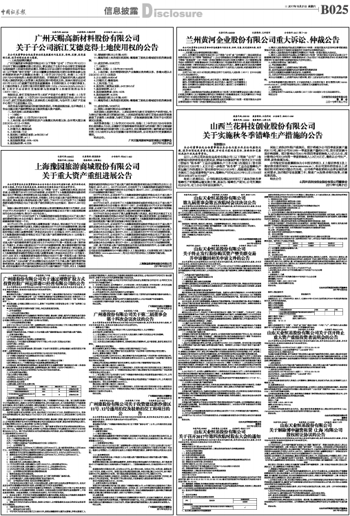 2017年9月21日,公司发布了《上海豫园旅游商城股份有限公司关于重大资产重组进展公告》(公告编号:临2017-054),公司股票自2017年9月21日起继续停牌。