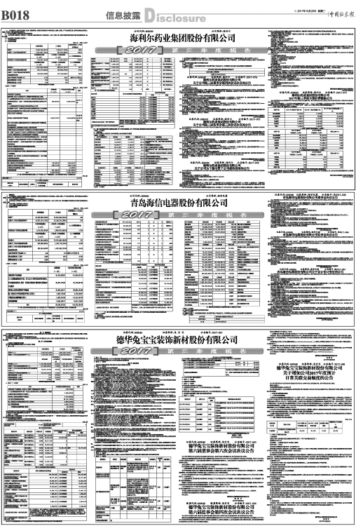 具体内容详见将于2017年10月25日在《中国证券报》、《上海证券报》、《证券时报》、《证券日报》及上海证券交易所网站(www.sse.com.cn)披露的《海利尔药业集团股份有限公司2017年第三季度报告》(公告编号2017-076)。