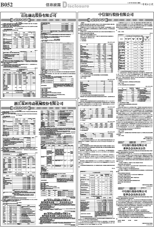一、审议通过《关于提请审议〈中信银行2017年第三季度报告〉的议案》