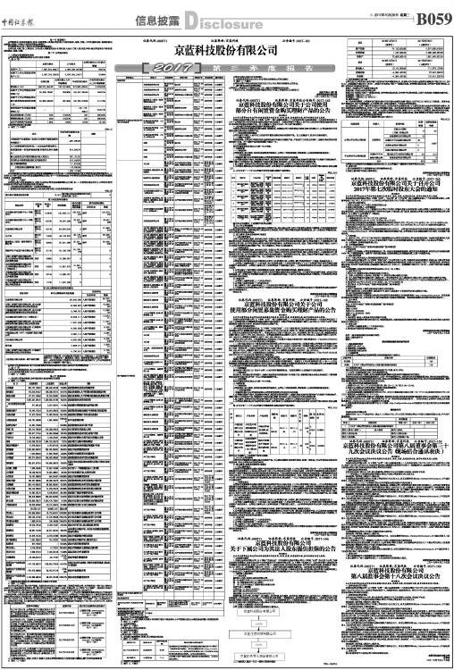 《京蓝科技股份有限公司2017年第三季度报告》全文及正文,详见巨潮资讯网http://www.cninfo.com.cn、《中国证券报》、《证券时报》和《上海证券报》。