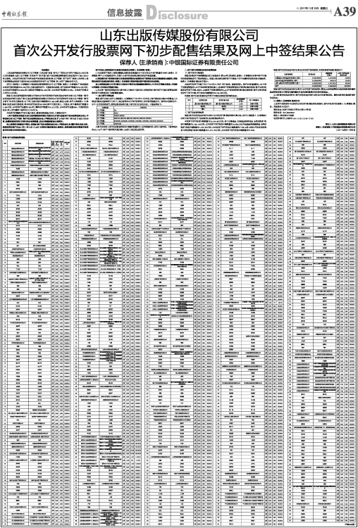 首次公开发行股票网下初步配售结果及网上中签结果公告