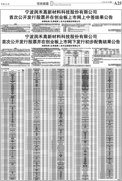 首次公开发行股票并在创业板上市网上中签结果公告