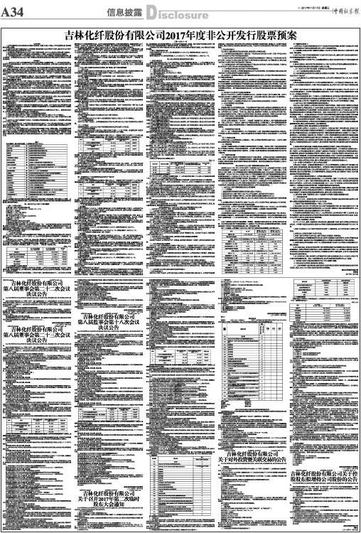 吉林化纤股份有限公司2017年度非公开发行股票预案
