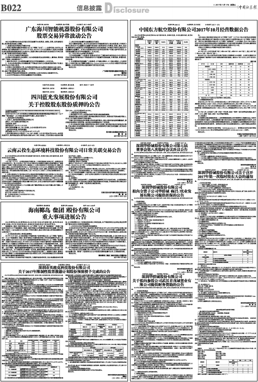 中国东方航空股份有限公司2017年10月经营数据公告
