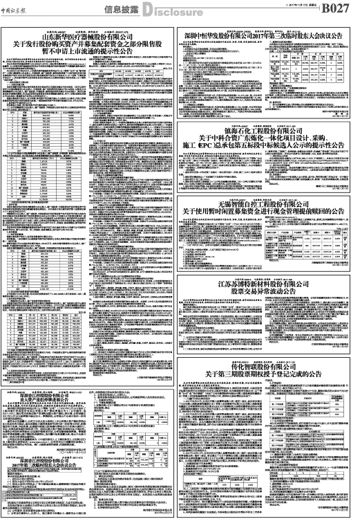 深圳中恒华发股份有限公司2017年第三次临时股东大会决议公告