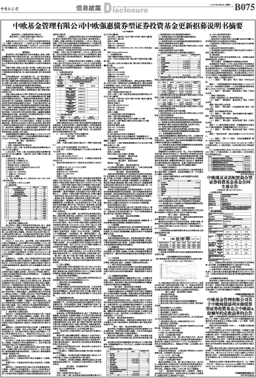 中欧基金管理有限公司中欧强惠债券型证券投资基金更新招募说明书摘要