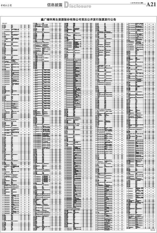 鑫广绿环再生资源股份有限公司首次公开发行股票发行公告