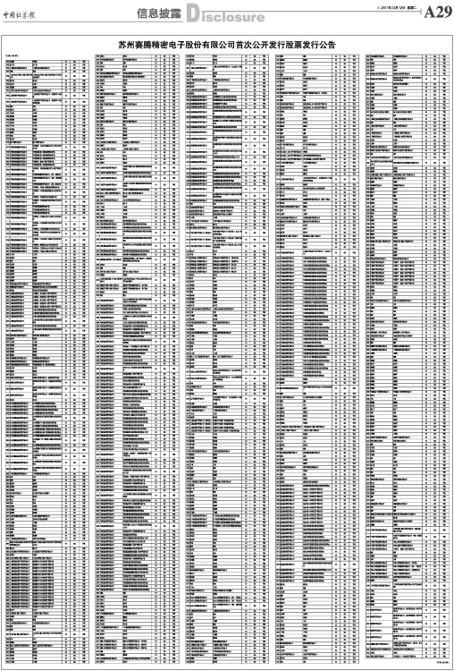苏州赛腾精密电子股份有限公司首次公开发行股票发行公告