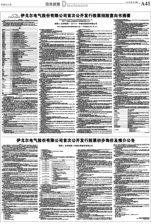 伊戈尔电气股份有限公司首次公开发行股票初步询价及推介公告