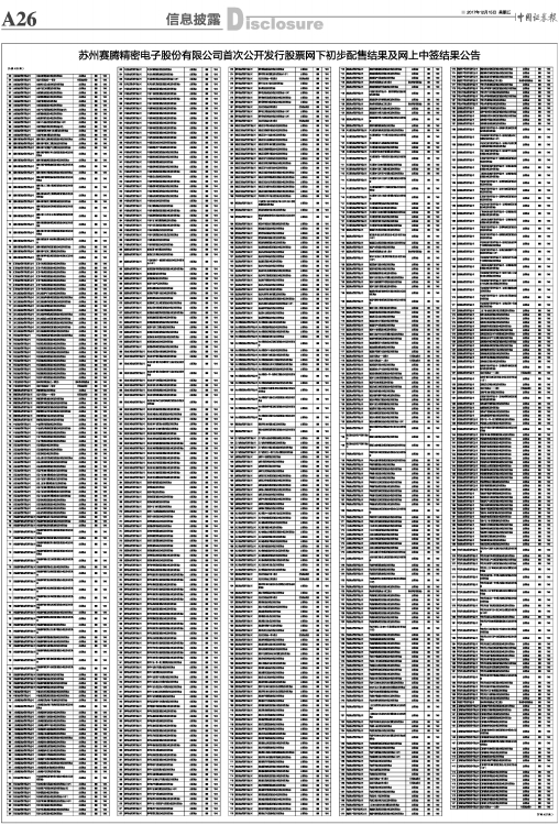 苏州赛腾精密电子股份有限公司首次公开发行股票网下初步配售结果及网上中签结果公告