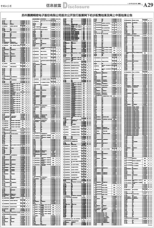 苏州赛腾精密电子股份有限公司首次公开发行股票网下初步配售结果及网上中签结果公告