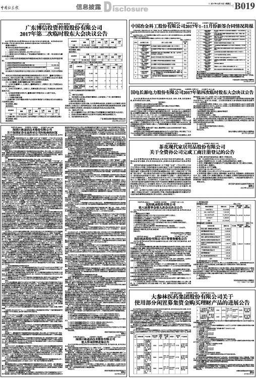 中国冶金科工股份有限公司2017年1-11月份新签合同情况简报
