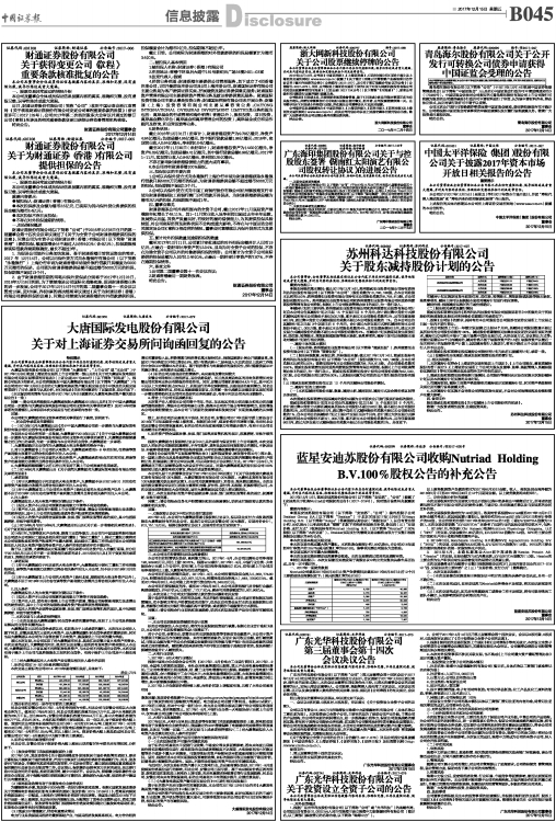 中国太平洋保险(集团)股份有限公司关于披露2017年资本市场