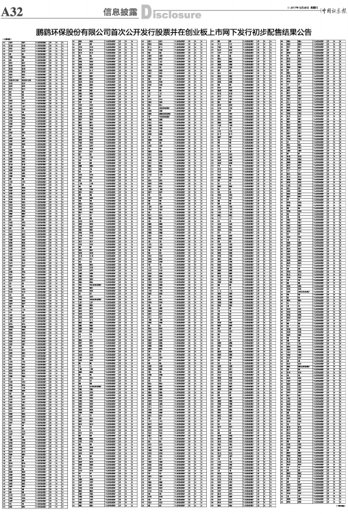 鹏鹞环保股份有限公司首次公开发行股票并在创业板上市网下发行初步配售结果公告