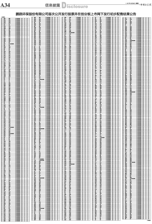 鹏鹞环保股份有限公司首次公开发行股票并在创业板上市网下发行初步配售结果公告
