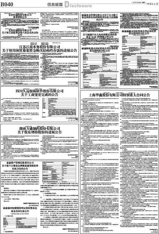 融通基金管理有限公司关于公司旗下基金所持有的停牌股票估值方法调整的公告