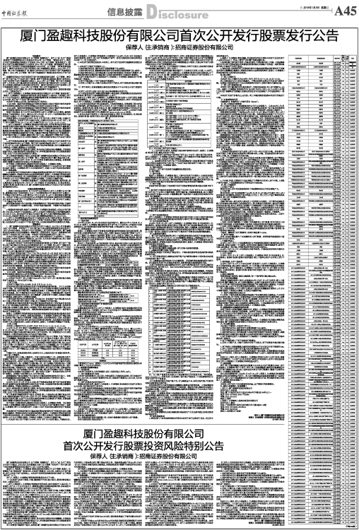 厦门盈趣科技股份有限公司首次公开发行股票发行公告