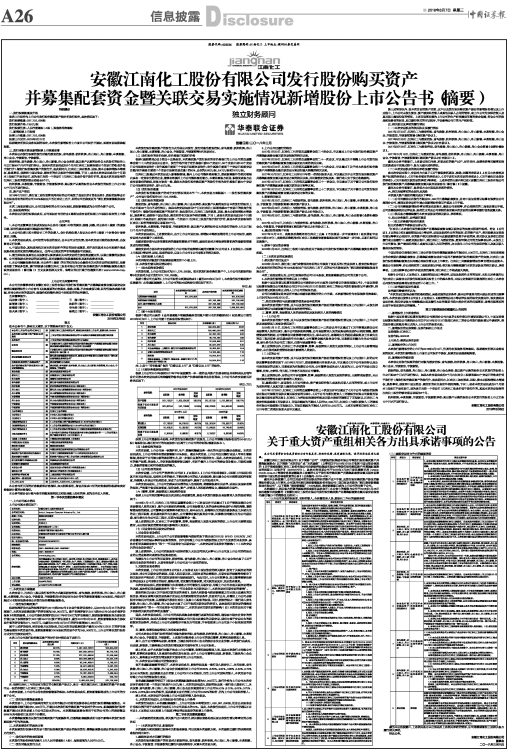 安徽江南化工股份有限公司发行股份购买资产