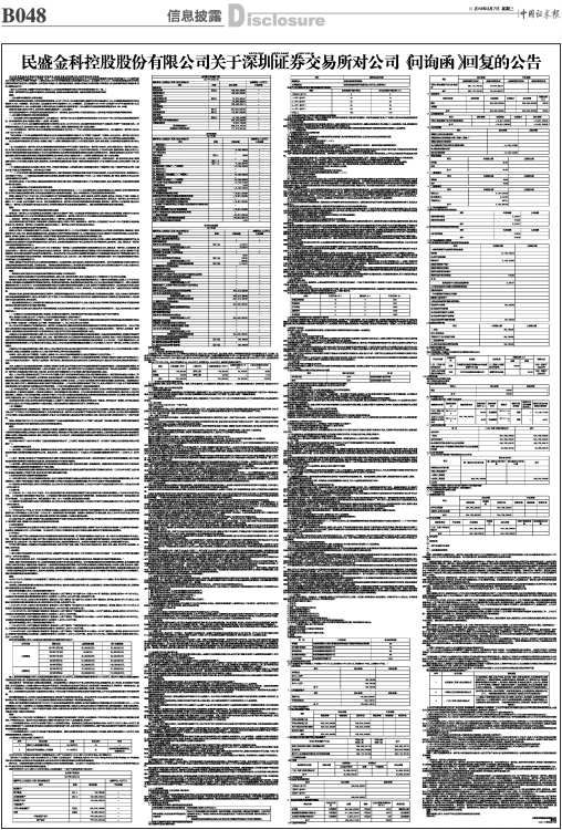 民盛金科控股股份有限公司关于深圳证券交易所对公司《问询函》回复的公告
