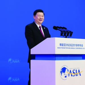 10日上午,博鳌亚洲论坛2018年年会在海南省博鳌开幕。国家主席习近平出席开幕式并发表题为《开放共创繁荣 创新引领未来》的主旨演讲,强调各国要顺应时代潮流,坚持开放共赢,勇于变革创新,向着构建人类命运共同体的目标不断迈进;中国将坚持改革开放不动摇,继续推出扩大开放新的重大举措,同亚洲和世界各国一道,共创亚洲和世界的美好未来。