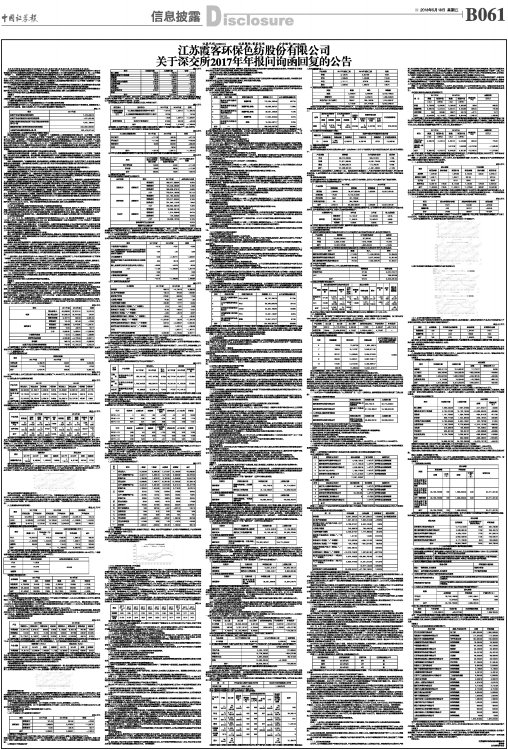 关于深交所2017年年报问询函回复的公告