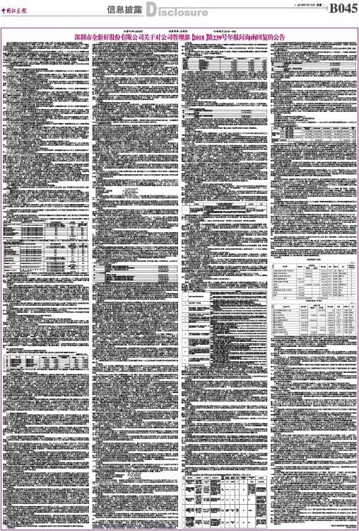 深圳市全新好股份有限公司关于对公司管理部【2018】第239号年报问询函回复的公告